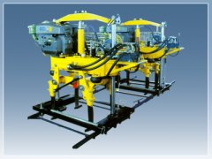 XYD-2A型:兩臺(tái)搗固機(jī)放置在同一走行架上作業(yè),復(fù)線地段作業(yè)時(shí)配置單側(cè)下道架,兩臺(tái)搗固機(jī)下道在同一下道架上(XYD-2A1);單線地段作業(yè)時(shí)配置雙側(cè)下道架,兩臺(tái)搗固機(jī)分別下道在兩下道架上(XYD-2A2)。下道架懸掛在走行架一側(cè)或兩側(cè),隨機(jī)走行。