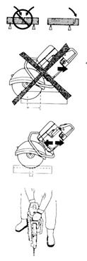 l 避免在不利條件下鋸軌,如:濃霧、大雨、強(qiáng)風(fēng)或極冷的天氣等。在不利條件下工作易引起疲勞,甚至?xí)霈F(xiàn)危險(xiǎn)后果。 l 若現(xiàn)場(chǎng)未準(zhǔn)備就緒,或站立未穩(wěn),請(qǐng)勿開(kāi)始工作。檢查周?chē)袩o(wú)雜物,確保鋸軌過(guò)程中不會(huì)有任何雜物意外落下或飛起而造成傷害。斜坡地段工作時(shí),更要加倍注意。 l 在鋸片旋轉(zhuǎn)狀態(tài)下,要隨時(shí)注意,不要讓衣服或身體的某一部分接觸鋸片。 l 發(fā)動(dòng)機(jī)啟動(dòng)后,請(qǐng)保持您的位置遠(yuǎn)離鋸片。 l 啟動(dòng)前,務(wù)必確保所有安保裝置都已安牢。 l 為保安全,請(qǐng)務(wù)必確保工作現(xiàn)場(chǎng)照明充足。 l 對(duì)操作者而言,有些工作位是強(qiáng)制要求的。 l 檢查周?chē)闆r,確保沒(méi)有任何電線(xiàn)電纜橫穿鋸軌區(qū)域。